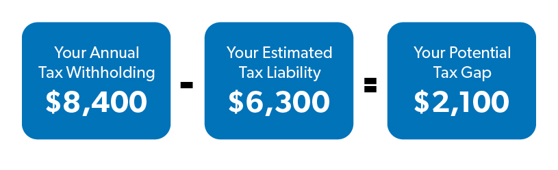 Now it’s time for some simple subtraction! Just take your annual tax withholdings and subtract your estimated tax liability. Using the example above, you’re potentially sending $2,092.50 more to the IRS than you need to. It’s time to fix that!